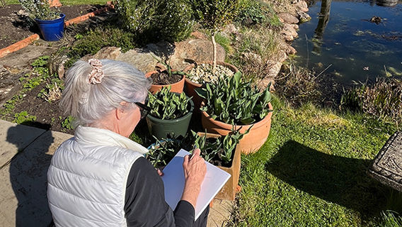 We had a sunny morning and began by sketching the bulbs outdoors.